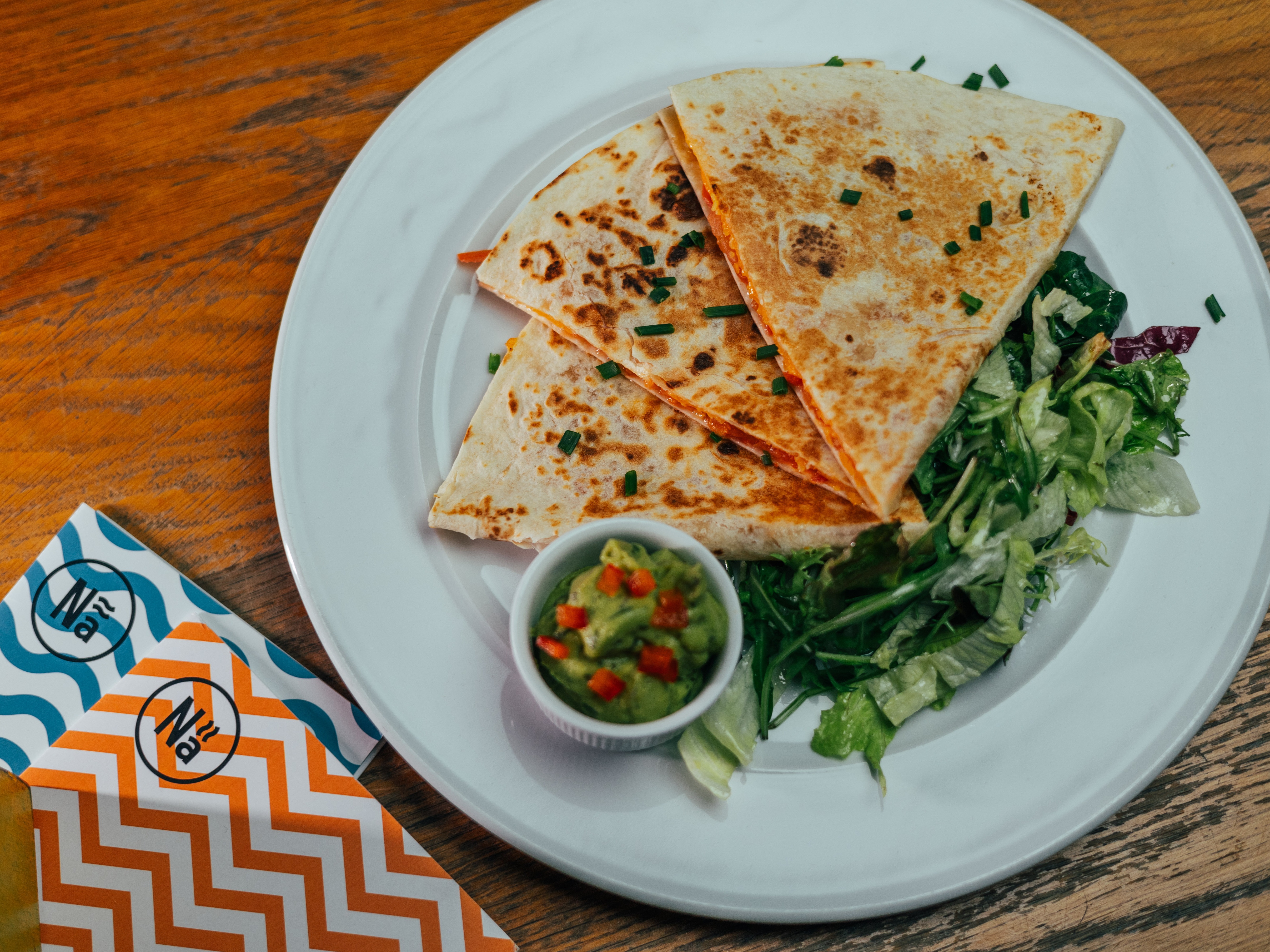 s listovým salátkem a avokádovým guacamole