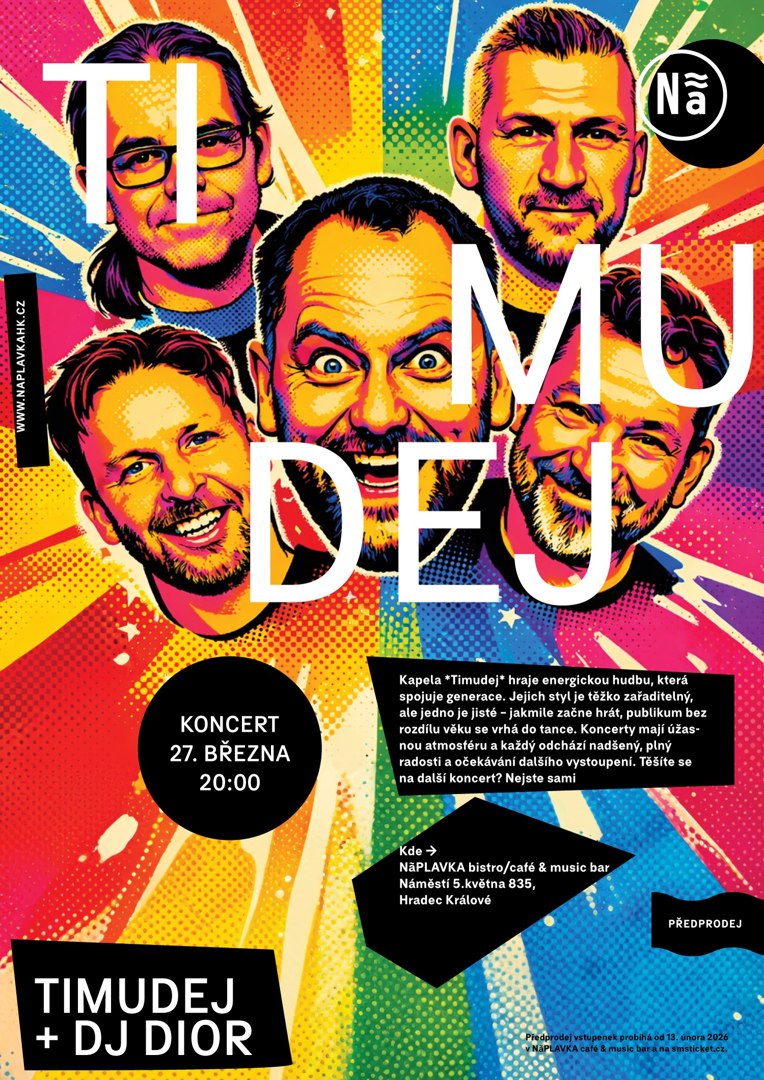 Kapela *Timudej* hraje energickou hudbu, která spojuje generace. Jejich styl je těžko zařaditelný, ale jedno je jisté – jakmile začne hrát, publikum bez rozdílu věku se vrhá do tance. Koncerty mají úžasnou atmosféru a každý odchází nadšený, plný radosti a očekávání dalšího vystoupení. Těšíte se na další koncert? Nejste sami!
