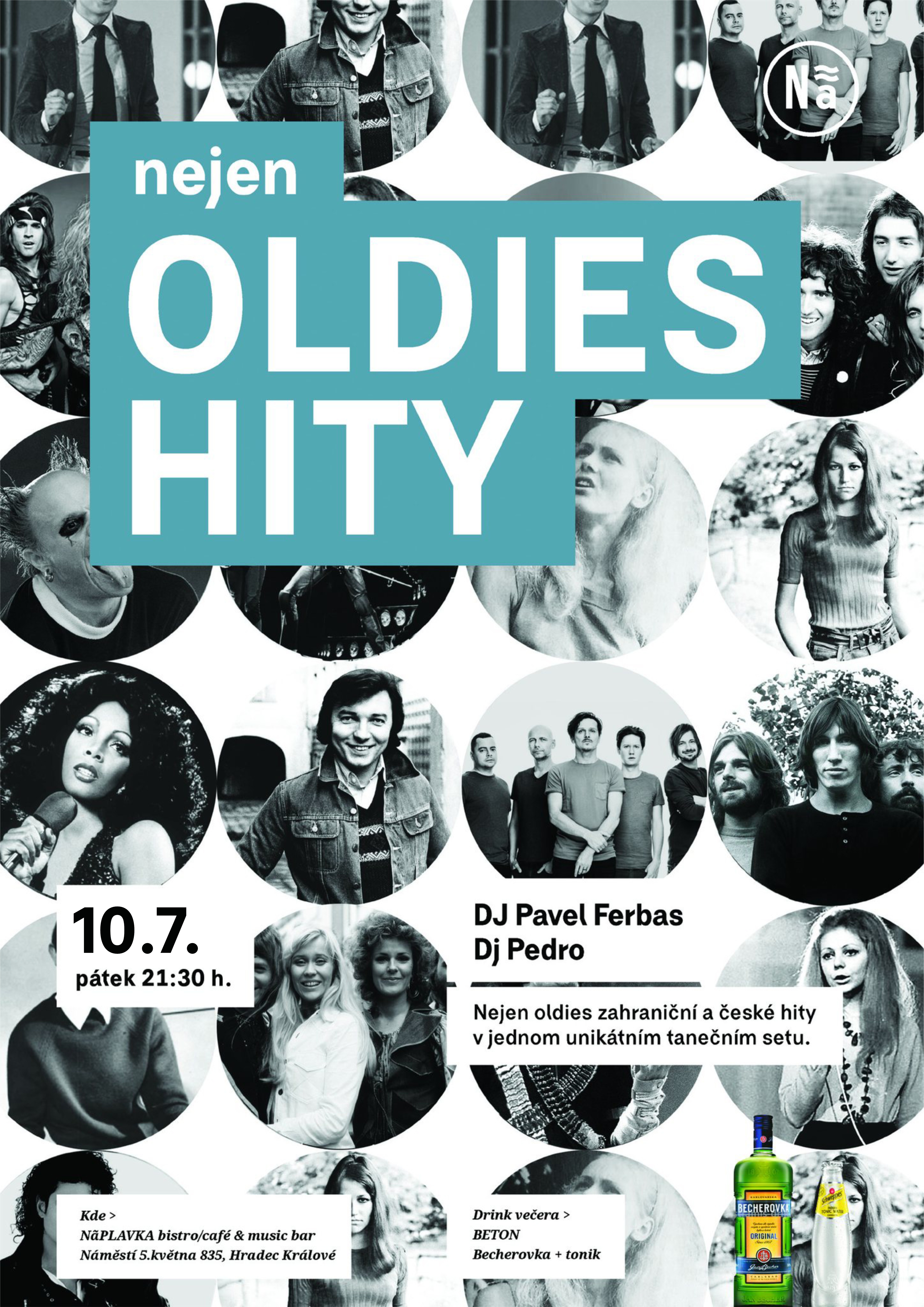 Nejen OLDIES HITY je unikátní hudební projekt, který vrací na klubovou scénu starší i aktuální české i zahraniční taneční hity. 💥Vrátíte se do let minulých, kdy byly v oblibě „odpolední čaje“ a právě oldies hitovky! Večerem Vás provede ostřílená dvojice DJ´s Pavel Ferbas a Pedro. Těšíme se! 💥 10.7.2026 / 21:30 DJ PAVEL FERBAS DJ PEDRO Drink večera: BETON Vstup: 120 Kč ★ nekuřácký prostor ★ wi-fi free ★ bezbariérový přístup ★ párty fotograf ★ video projekce Pokud nás chcete sledovat na FB, dostávat pozvánky na události a prohlížet fotky z akcí, přidejte si nás do přátel: https://www.facebook.com/naplavkahradec. Na akci mohou být pořizovány audio-vizuální záznamy, určené k marketingovým účelům NãPLAVKA café & music