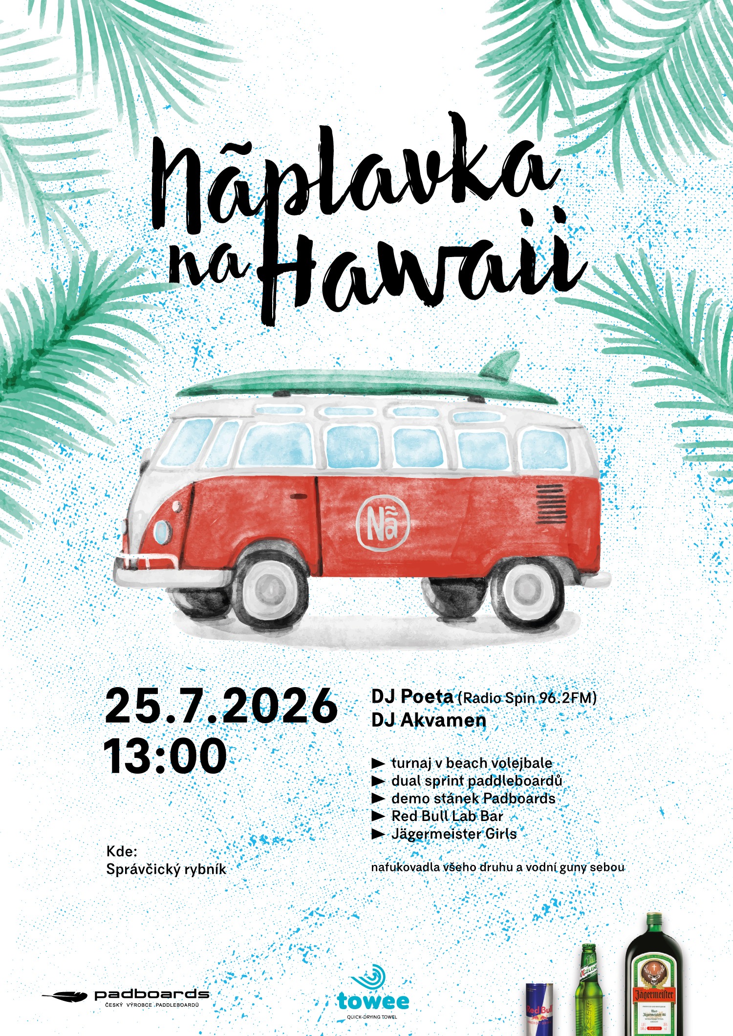 Na konci července pořádáme už 13.ročník naší srdcové venkovní akce. Místem konání je opět Hawaii bar u Správčického rybníka v Předměřicích nad Labem. Čeká vás turnaj v plážovém volejbale, sprint paddleboardů, volné půjčovaní paddleboardů Padboards nebo drinky od Red Bull. Večerní party odstartuje ve 21:30 a má ji opět v režii dvojice ostřílených borců DJ Akvamen a DJ Poeta ( Radio Spin 96.2 FM ). Počasí objednané, přes den na plavky, večer stačí triko, kraťasy nebo sukně 🙂!
